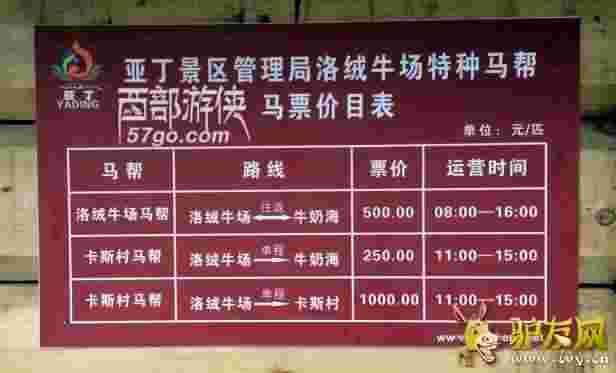 亞丁馬費收費標準-亞丁景區管理局洛絨牛場特種馬幫馬票價目表 attach_img 2016-9-9