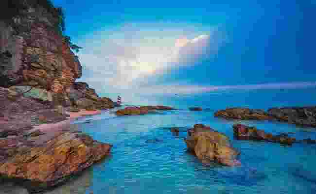 小辣甲海水清澈透明,湛藍的海水,充滿著夢幻的感覺。